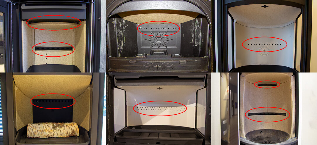 En rentbrennende ovn har hull designet for sekundærforbrenning som du mest sannsynlig vil finne på bakveggen inne i brennkammeret.