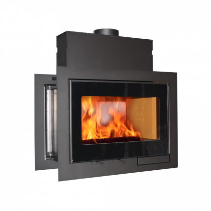 Dette er en elegant peisinnsats med gjennomsyn. Innsynet til flammene er fullkomment; det er ikke blokkert av innvendige deler. Scan DSA 12 har et funksjonelt dørhåndtak som flukter med peisinnsatsens front. Hver eneste lille detalj i dette vakre produktet har strømlinjeformet og innovativ design. Scan DSA 12 er smal og egner seg godt som romdeler eller installert mellom to rom. Den blir som et levende maleri på veggen og varmen fordeles optimalt.
